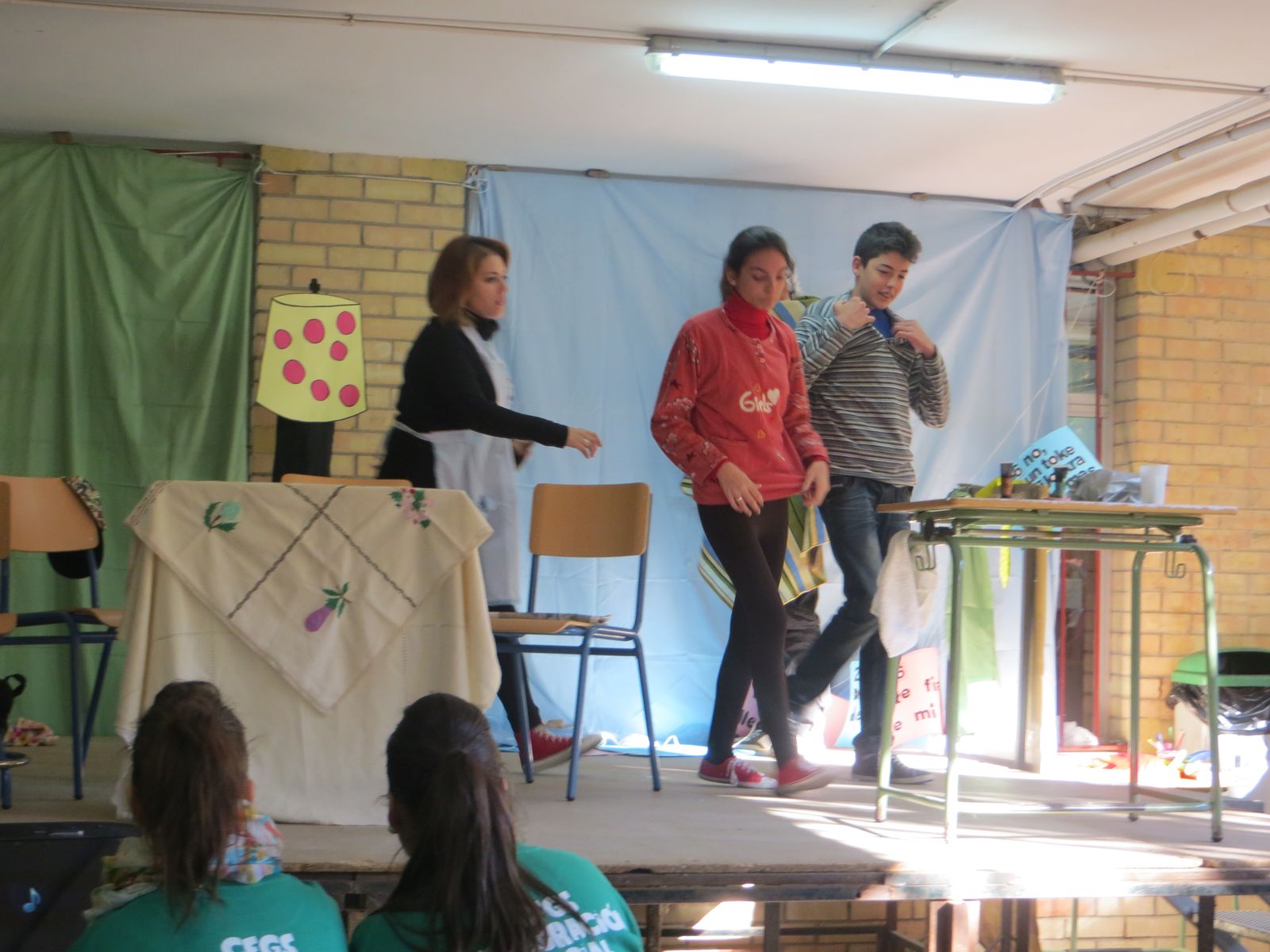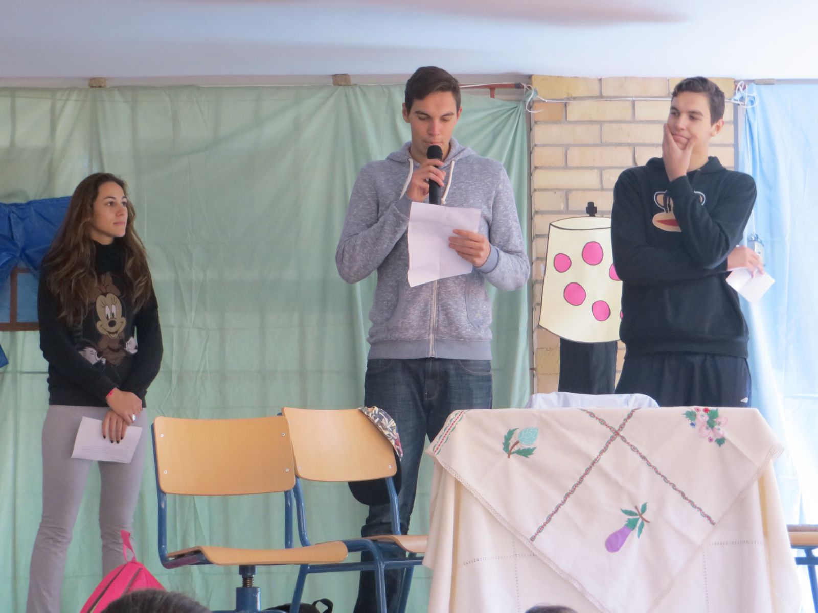 Finalmente los alumnos del Ciclo de Integración Social y los alumnos dela asignatura Cambio Social y de Género, llevaron a cabo la actividad “El mundo al revés: el mundo al derecho.” En ella realizaron la representacion de una serie de situaciones en la vida cotidiana en las que la mujer se ve discriminada en múltiples formas, y como posteriormente estas situaciones debería ser en la vida real.